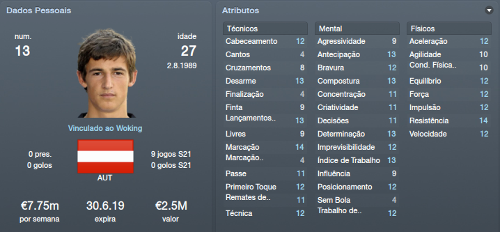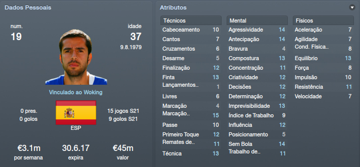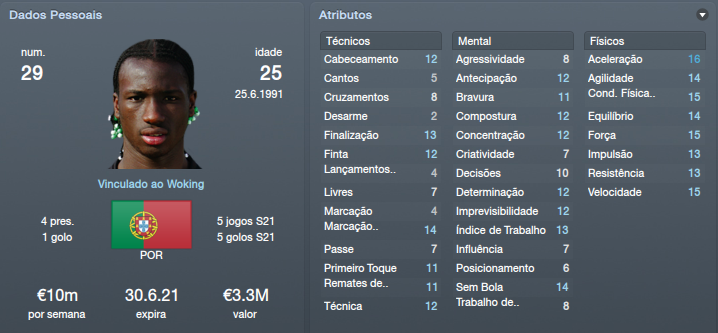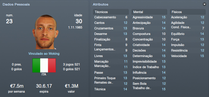 Sublinhado - Jogador emprestado ao Clube [FM12] Woking Up | Save Mês Ago'12 - Mingos - 03-06-2012 RE: [FM'12] Woking Up Força! [FM12] Woking Up | Save Mês Ago'12 - zurrilho - 03-06-2012 RE: [FM'12] Woking Up Boa Sorte GS. [FM12] Woking Up | Save Mês Ago'12 - Reese - 03-06-2012 RE: [FM'12] Woking Up Boa sorte [FM12] Woking Up | Save Mês Ago'12 - STK - 03-06-2012 RE: [FM'12] Woking Up Boa Sorte GS! [FM12] Woking Up | Save Mês Ago'12 - João Silveira - 03-06-2012 RE: [FM'12] Woking Up Grande! ![]() Força! [FM12] Woking Up | Save Mês Ago'12 - Ministro das Finanças - 03-06-2012 RE: [FM'12] Woking Up Boa sorte [FM12] Woking Up | Save Mês Ago'12 - Saivet - 03-06-2012 RE: [FM'12] Woking Up Boa Sorte e tens aí um bom desafio. [FM12] Woking Up | Save Mês Ago'12 - 1651997 - 03-06-2012 RE: [FM'12] Woking Up Força nisso! [FM12] Woking Up | Save Mês Ago'12 - GS10 - 03-06-2012 RE: [FM'12] Woking Up Muito obrigado a todos ![]() Pré Temporada ![]() Começamos a pré-temporada! O jogo de treino com as reservas deixou-me extremamente desapontado, mas não dramatizo. Ainda falta para começar a época e, além de ainda não conhecer a equipa, faltam muitos reforços que serão chave desta equipa. O jogo com o Cambridge deixava-me um pouco inseguro, é uma equipa forte, da divisão acima da nossa e uma das equipas com que simpatizo. Afinal os jogadores surpreenderam-me, especialmente o Anglo-Italiano Giuseppe Sole, avançado da equipa, que se habilita assim a ser um dos titulares.