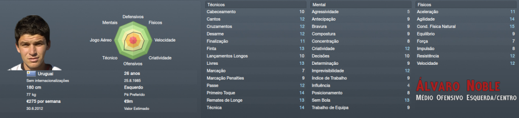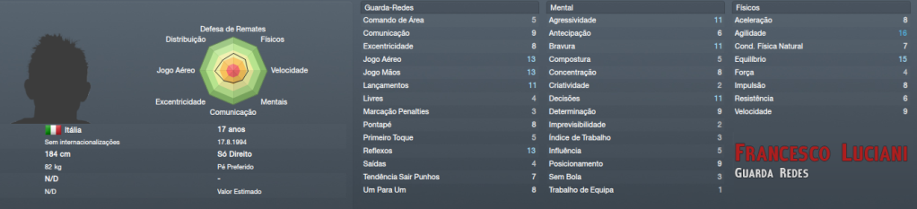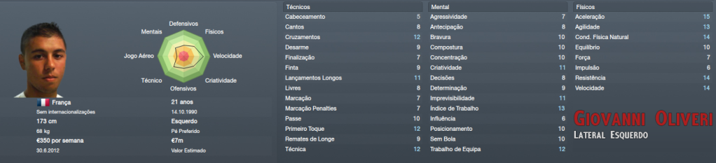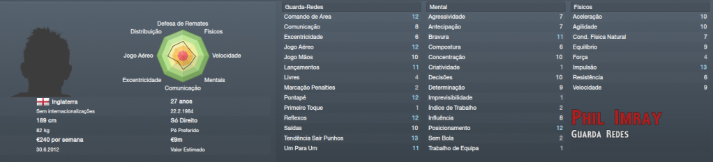 ![]() Phil Imray | Guarda Redes, será, ao que tudo indica, o titular para a época, é um jogador chave num escalão onde não podemos esperar vencer todos os jogos. Giovanni Oliveri | Lateral Esquerdo, mais um jogador para a titularidade. embora tenha um bom lateral esquerdo no plantel, esse será adaptado a extremo. Vou potenciar laterais ofensivos e rápidos e o Oliveri é uma excelente solução. Julien Brellier | Trinco, vai marcar o passo da equipa, segurar o jogo e proteger a defesa. Um bom jogador, mas continuamos à procura de outra solução para a posição que irá exigir grande desgaste dos jogadores. Álvaro Noble | Extremo Esquerdo / Médio Ofensivo Centro, tecnicamente impecável para a nossa equipa, um excelente negócio, possível graças à sua segunda nacionalidade Italiana. Infelizmente, as reformulações que pretendo fazer ao plantel vão necessariamente implicar prejuizo, o orçamento é baixo e tenho que dispensar alguns jogadores profissionais para equilibrar as contas. Para já consegui as saídas de dois jogadores: