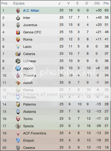 Ao fim de Fevereiro, a classificação era-nos favorável. Os 5 pontos garantiam-nos estabilidade. Frente ao Ascoli vencemos facilmente.