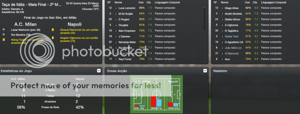 Na primeira mão da meia-final da Taça, em Nápoles, queríamos fazer um bom resultado para depois, em Milão garantir mais uma presença na final. Fomos, desde cedo, superiores, mas foi o Napoli a marcar primeiro. Ainda assim Niang veio trazer alguma justiça ao resultado. Um empate a 1 não é um mau resultado mas merecíamos mais.