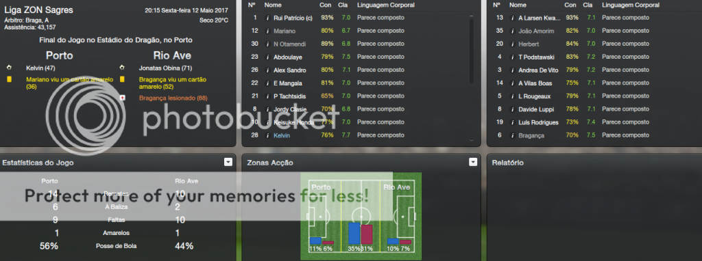 (cliquem na imagem para ver as estatísticas) Para nos despedirmos do Dragão, novo empate. Desta vez contra o Rio Ave. Muitos pediram que este fosse o meu último jogo no Dragão ao serviço do Porto. Será? Seguia-se a final da Taça. O 3º título (secundário) da época era o objectivo. Entrámos demasiado fortes para uma reacção do Marítimo e ao intervalo tínhamos a final resolvida. É a 5ª taça consecutiva! Uma vitória que agradou aos adeptos e à direcção, sem esquecer o fracasso na Liga. Foi o 3º título da época, mas deixa um amargo de boca.