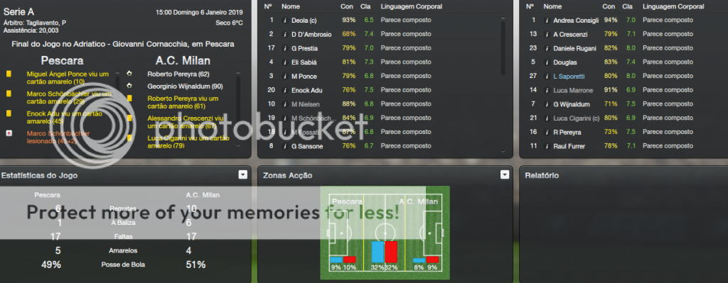 A partir de Janeiro, qualquer erro era fatal, portanto tínhamos de começar com o pé direito e entrar forte antes do regresso da Euroliga. Começámos frente ao Pescara no Adriatico - Giovanni Cornacchia. A equipa de Agostinho Cá, onde fomos recrutar Rugani, estava a fazer uma época tranquila, e como tal era um jogo complicado. Fomos superiores, mas tivémos de esperar até aos 62' pelo primeiro golo. Depois disso dominámos a espaços e ainda fomos a tempo do 2º golo. Entrada com o pé direito em 2019.