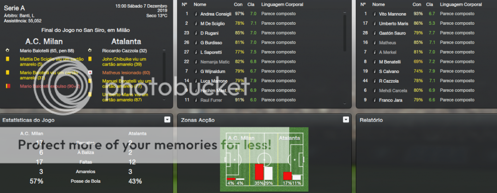 Depois recebemos a Atalanta e tivémos de suar bastante para vencer. A equipa de Bergamo fez o golo na primeira vez que rematou. Uma injustiça tremenda. Tivémos de correr sempre atrás desse resultado, com bolas nos postes, grandes defesas do guarda-redes, mas felizmente tínhamos Balotelli que bisou e deu-nos os 3 pontos justos mas suados. No fim, ainda acabou expulso. Um dia normal na vida de Super-Mario.
