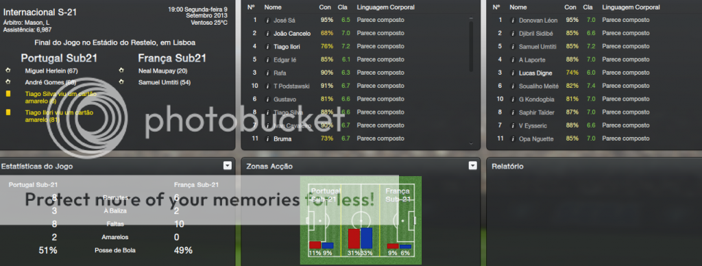 Agora seguia-se a França. Um encontro em que se previa grandes dificuldades, mas faríamos tudo para mantermos um score interessante de 11-5-1. Sendo que a derrota foi frente à poderosa Espanha. O jogo começou equilibrado, mas a França mais perigosa e acabou por marcar aos 20'. Ao intervalo as habituais substituições e a França aumentou para 2-0 aos 54'. Previa-se a 2ª derrota da minha era. Mas André Gomes e Herlein acordaram e salvaram a nação com 2 golos em 2 minutos. Um empate justo num jogo interessante de futebol.