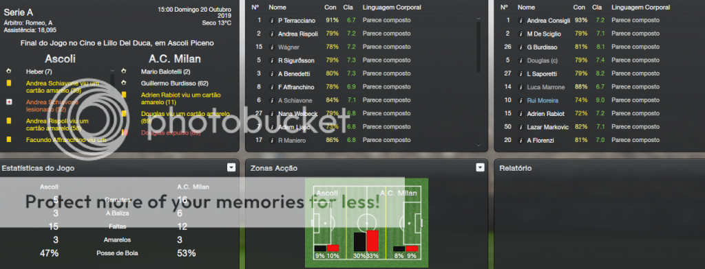 Depois veio a habitual pausa para as selecções e voltámos à competição frente ao Ascoli, em Ascoli. Entrámos muito bem no jogo, mas durou pouco tempo, porque o Ascoli cedo empatou. Depois começou uma corrida contra o tempo, uma vez que a bola teimava em não entrar, até Burdisso fazer o golo que nos aliviou e deu-nos os 3 merecidos pontos.