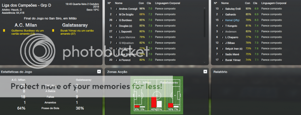 Depois de desaire em Madrid, voltámos à Champions. Recebemos o Galatasaray (é assim que se diz Bruma) e só a vitória interessava. Cedo começámos o nosso 'massacre' mas a bola teimava em não entrar. No entanto, acreditava na equipa, porque estavam a fazer um grande jogo. Na segunda parte continuou o massacre, mas nada de golos. E assim foi até ao final do jogo. Um 0-0 muito justo e doloroso que pode deixar-nos muito longe do objectivo de passar em primeiro.