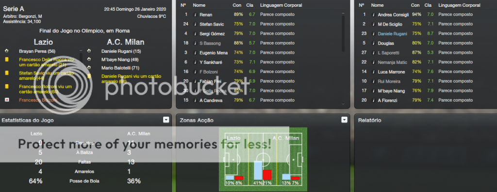 Seguiu-se mais um jogo longe de Milão, desta vez na capital, no Olímpico de Roma, frente à Lazio. Passámos algumas dificuldades, mas estivemos sempre na frente do marcador e isso dá outro conforto. Um resultado justo, mas talvez não demonstre o que se passou em campo, foi um jogo bem difícil.