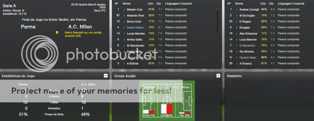 Com a chegada de 2020 chegaram os prémios da Serie A. Os melhores jogadores e o melhor treinador. A cerimónia prometia ser animada. O treinador do ano, fui eu. Depois de uma grande época, foi um prémio justo e a valorização do meu trabalho, mas acima de tudo, do trabalho dos jogadores. Depois vieram os prémios mais difíceis de atribuir. Consigli foi o 3º melhor guarda-redes do ano e Rugani foi escolhido como o melhor defesa do ano. Um prémio justo para o seu enorme trabalho. Niang foi o 2º melhor estrangeiro do ano, e Balotelli o 2º melhor jogador do ano, atrás de Belhanda que foi o vencedor da noite. No entanto, Balotelli e Rugani foram os melhores italianos do ano. Prémios justos que servirão de motivação para o resto da época. Depois disso voltou a acção. Fomos a Parma, ao Ennio Tardini para um jogo difícil, mas que esperávamos ganhar. Fomos superiores durante todo o jogo, mas a bola ficava sempre à porta. Bateu na barra, ficou nas mãos de Culo, mas golos nem vê-los. Posto isto, veio um nulo injusto para nós.