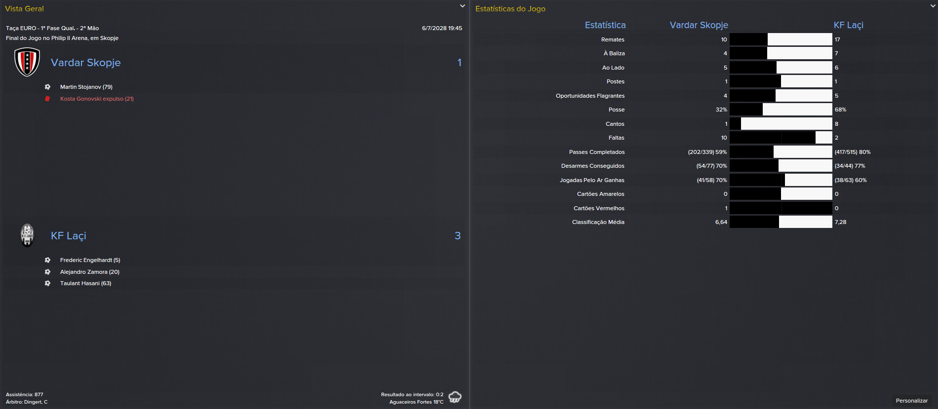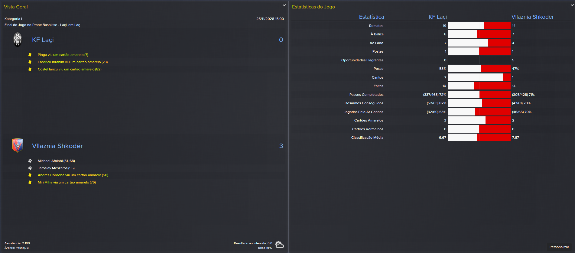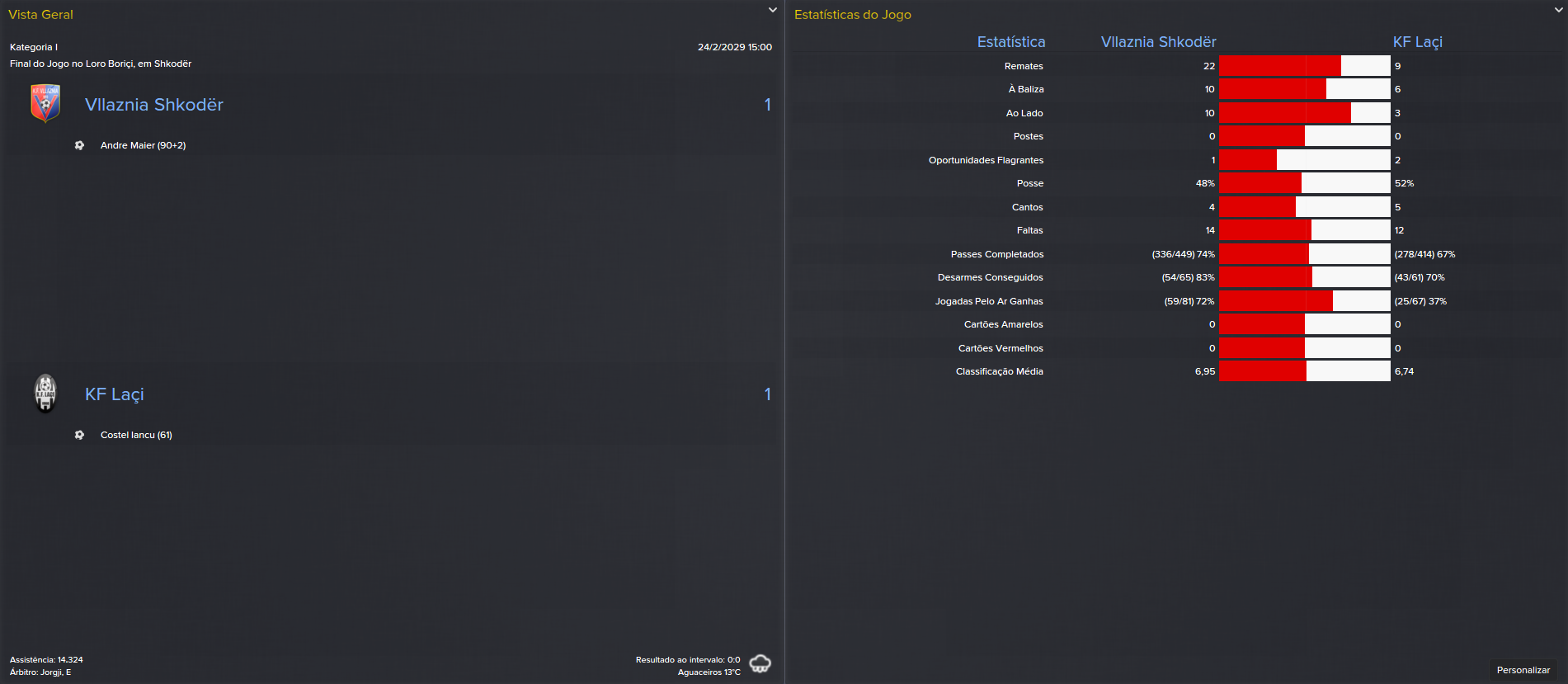 Mais um país, mais um desafio. Desta vez, depois de o Salzburg ter rejeitado o meu currículo (xz), vim parar à Albânia, um país que há alguns anos era dos mais fechados no mundo, mas que já estava muito desenvolvido, principalmente no turismo. Claro que eu não vinha para aqui passar férias, vim parar ao KF Laçi, um clube que estava em claro crescendo de forma, tendo terminado o campeonato no top-3 nos últimos 5 anos e actual detentor da Taça da Albânia. Tinha, por isso, obrigação de ser campeão a curto prazo.