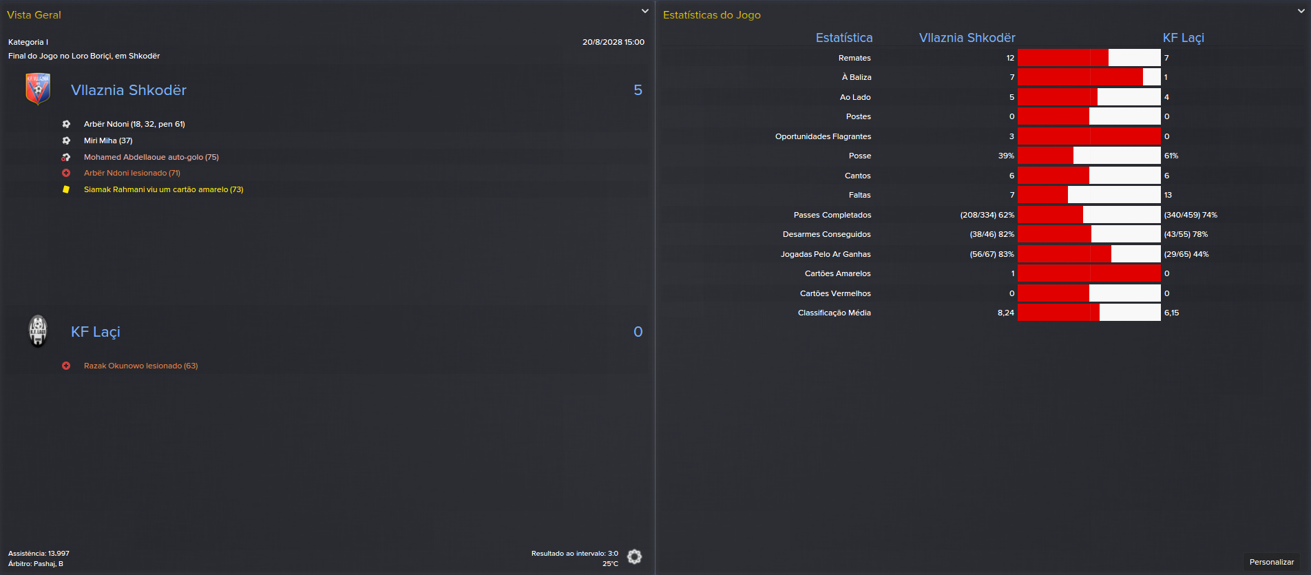 Esta época foi muito complicada, aqui na Albânia. Um futebol pobre, sem interesse e difícil de se ver. Mas, apesar disso, aguentámo-nos sempre nos lugares cimeiros. Mas do outro lado havia sempre uma equipa do Vllaznia muito forte. Nós fizémos sempre o nosso melhor, mas será que foi o suficiente?