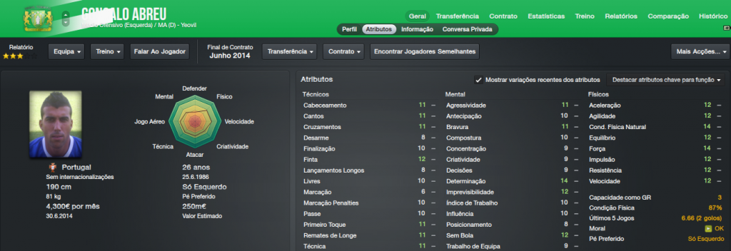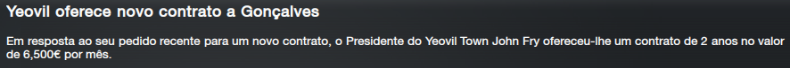 ![]() Chegou a altura de reforçar a equipa com sangue novo e fresco, pois a equipa atual está muito cansada devido aos jogos de 2 em 2 dias. Tentei trazer mais jogadores que acabaram por não assinarem devido a não conseguirem as licenças de trabalho, nomeadamente um defesa central que queria trazer por isso terei que me safar com o que tiver. ![]() Entradas Gonçalo Abreu - A imprensa já o dava como um possível reforço, mas devido ao Marítimo pedir algum dinheiro por ele tivemos que esperar até 3 horas do final do mercado de inverno, na qual fizemos uma oferta livre por ele e que acabaram por aceitar. Já tinha falado com ele, apresentei-lhe o nosso projeto e ele gostou que fez pressão para o deixarem sair livre o que acabou por acontecer. Jonathan Obika - Um velho conhecido do clube. Já vestiu a camisola dos Glovers por diversas vezes. Teve 4 anos no clube e todas elas por empréstimo do nosso clube mãe, o Tottenham e foi por isso que o escolhi como clube mãe, pois era ele que andava a tentar trazer no início da época mas que não acabou por acontecer. Veio para trazer concorrência ao Licínio. Saídas Sam Foley - Fez algumas boas exibições, mas estava a ganhar muito no clube e saiu por 10 mil £ Reuben Reid - Um elemento a mais no plantel, não o queria dispensar pois iria pagar uma indemnização um bocado elevada para o que o clube podia pagar. Obrigado a quem acompanha e comenta Alguma ss peçam... :fmpt: