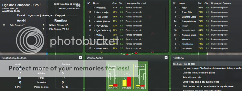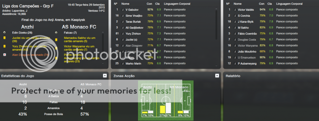 Por último recebemos o Mónaco num embate milionário na Liga... milionário. Era dinheiro por todos os lados, portanto. Era confronto muito esperado. Grandes jogadores de parte a parte, entre os quais se destacavam Falcao e Dzeko. Falcao começou melhor ao marcar aos 7', mas Dzeko não quis ficar atrás e empatou aos 28'. E esta a história do jogo. Tanto um como o outro tentaram voltar a marcar, mas as balizas mantiveram-se invioláveis. Resultado final foi um empate justo que deixa tudo muito em aberto.
