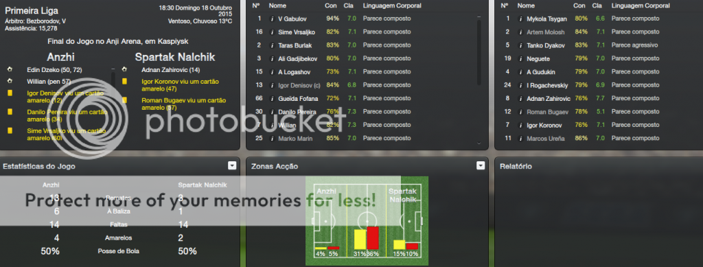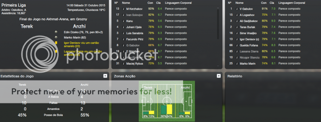Por fim, uma deslocação a Grosny para defrontar o Terek. O jogo parecia (no início) e pareceu (no fim) fácil, mas esteve bem longe disso. O jogo só foi resolvido com toda a artilharia pesada em campo. Faltou Ibrahimovic para ser todo o exército do Anzhi. Mas felizmente chegou Dzeko. A figura deste mês fez o hattrick em pouco mais de 15' e deu sentido à goleada. Temos equipa!
