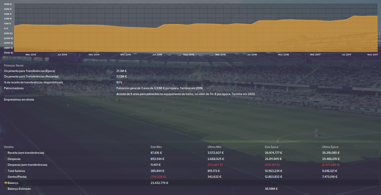 Transferências: Não havia muito dinheiro para gastar, tinha que me basear em empréstimos e dispensar/vender tudo o que estivesse ali a comer salário. A nível de entradas, reforcei-me nas posições onde havia menos gente e acabei por ir buscar um GR a meio da época porque o titular de vez em quando dava-lhe na cabeça e na recta final precisava que alguma segurança e confiança no sector defensivo. Quanto ás saídas, muitos dispensados, mas também ninguém os queria e apenas 1 venda, que achei pouco na altura, mas eu não gostava do jogador em questão e foi melhor que nada.