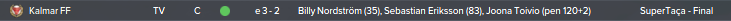 Supertaça: A Supertaça também foi ganha com sorte, pela diferença mínima a um adversário difícil como o Kalmar.