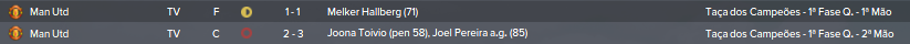 Liga dos Campeões (época passada): Calhou-nos o United nos oitavos. Com um milagroso empate com golos em Inglaterra, ficávamos com uma vantagem para o jogo em casa, contudo, não conseguimos levar a melhor contra a equipa inglesa, uma equipa extremamente forte e que nos acabou por ganhar e passar à fase seguinte.