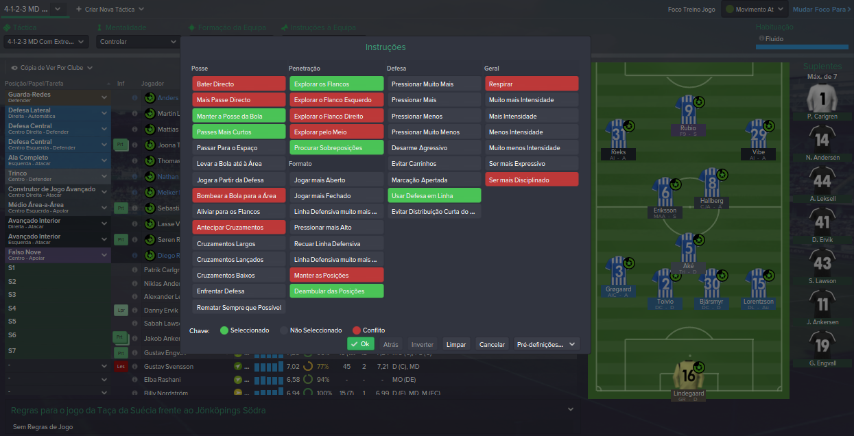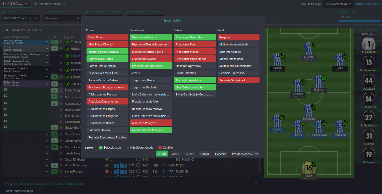 Tática : Usei o 4-4-2 mas também o 4-2-3-1, não estava a ter bons resultados no início do campeonato e tive de trocar de tática.