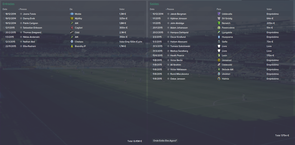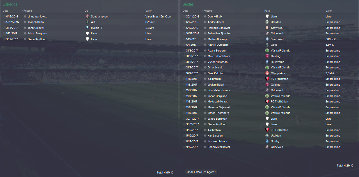 Transferências Este ano gastamos um pouco mais mas também apenas porque vendemos mais também, eu gosto pouco de ter saldo negativo e como tal gosto de manter as coisas equilibradas, quanto as saídas até meteu nojo tanta saída Big Grin